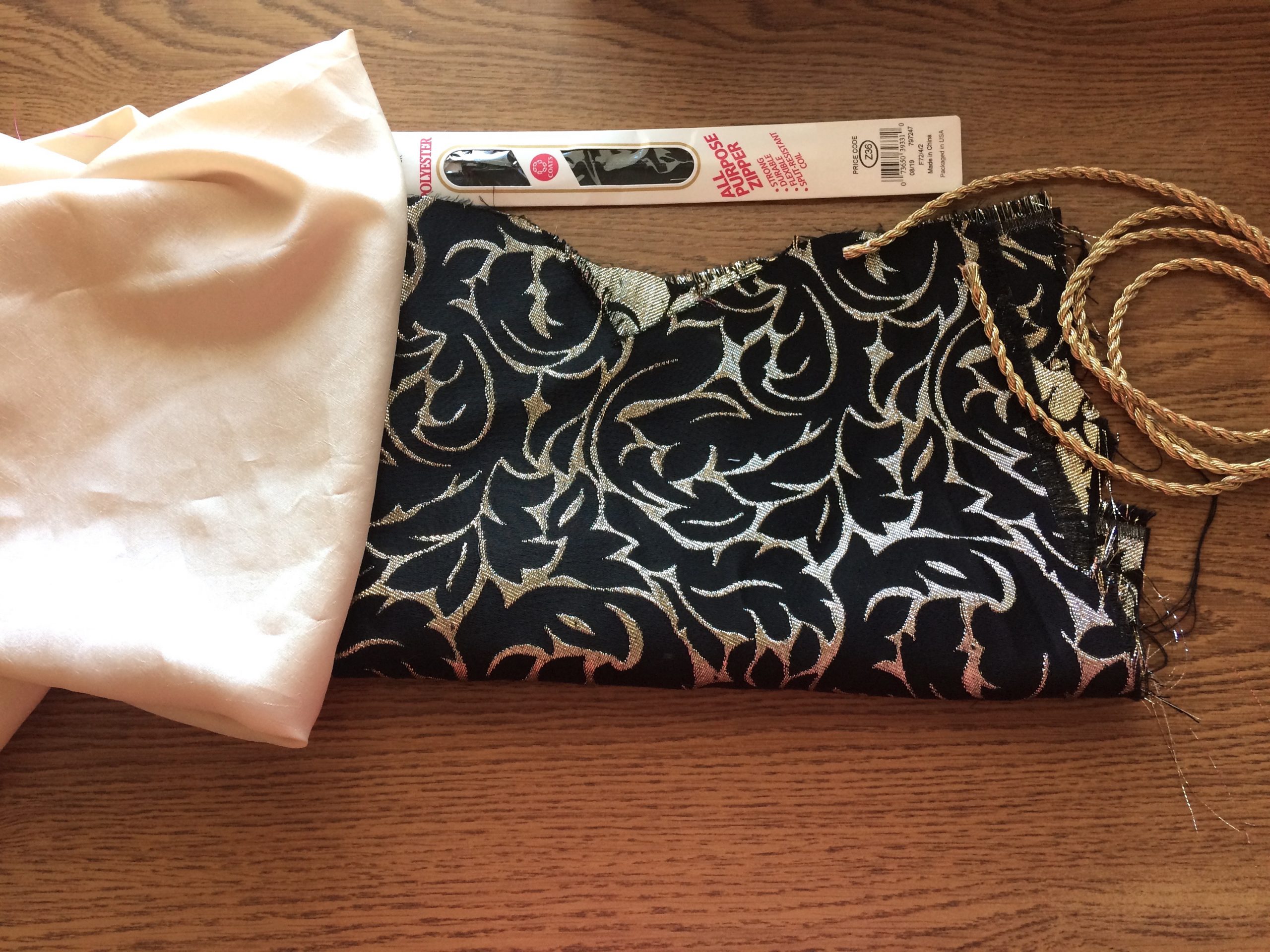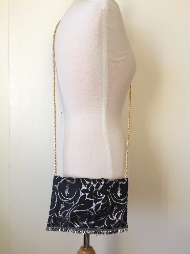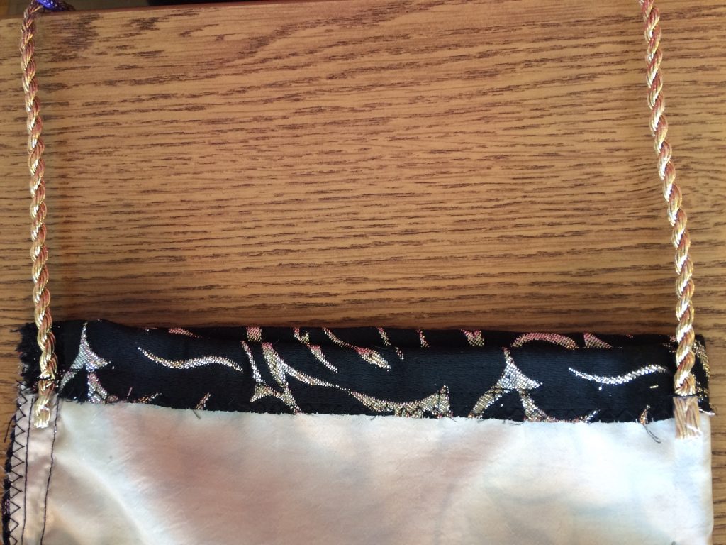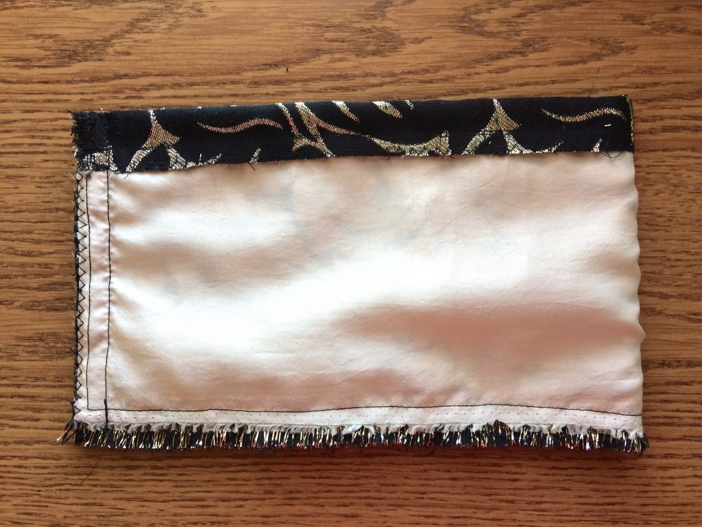 I was lucky that my scrap fabric here is a brocade with a cool fringe effect on the selvage. I decided to keep that fringe as the bottom edge of my purse and it ended up being my favorite part of the bag! Always stay open to what your materials can bring to the table; you might end up using something in a way you never expected.