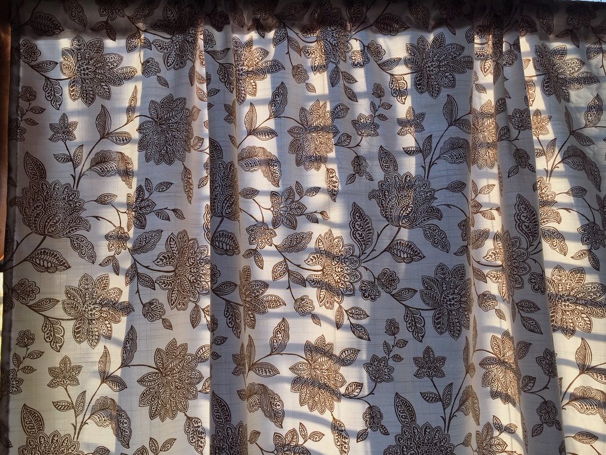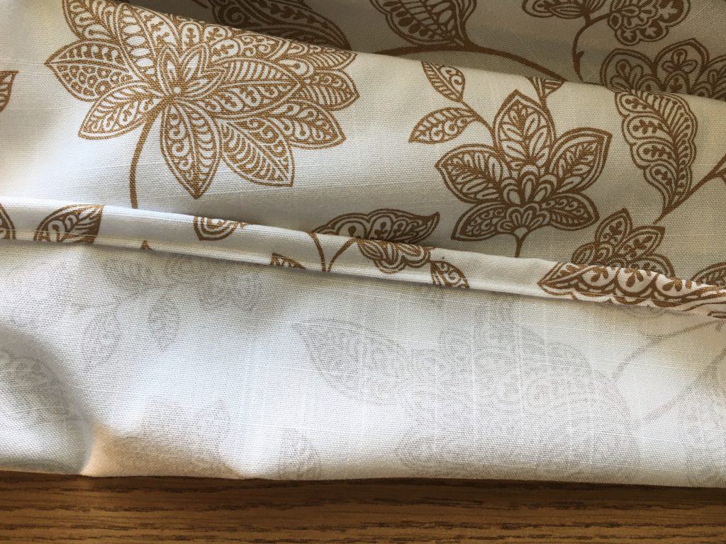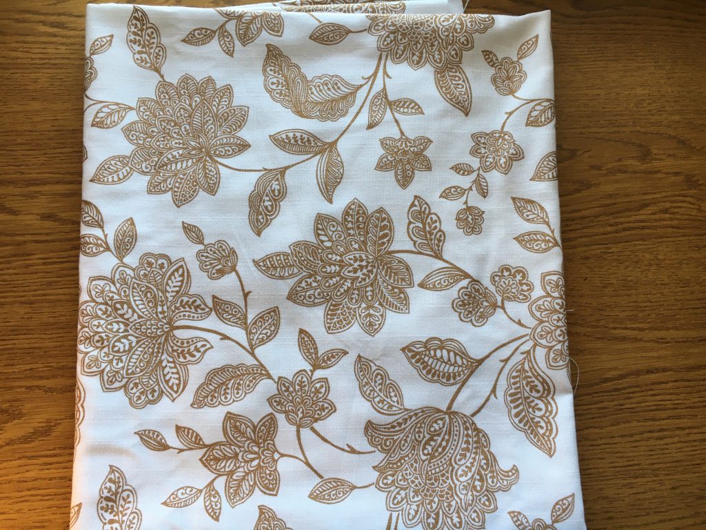 In my case, I chose this floral gold-and-white linen. I don’t need my curtain to block out light, and my window is small enough that I don’t need 2 curtain panels to cover it, so I’ll be making a simple single-panel one-layer curtain here.